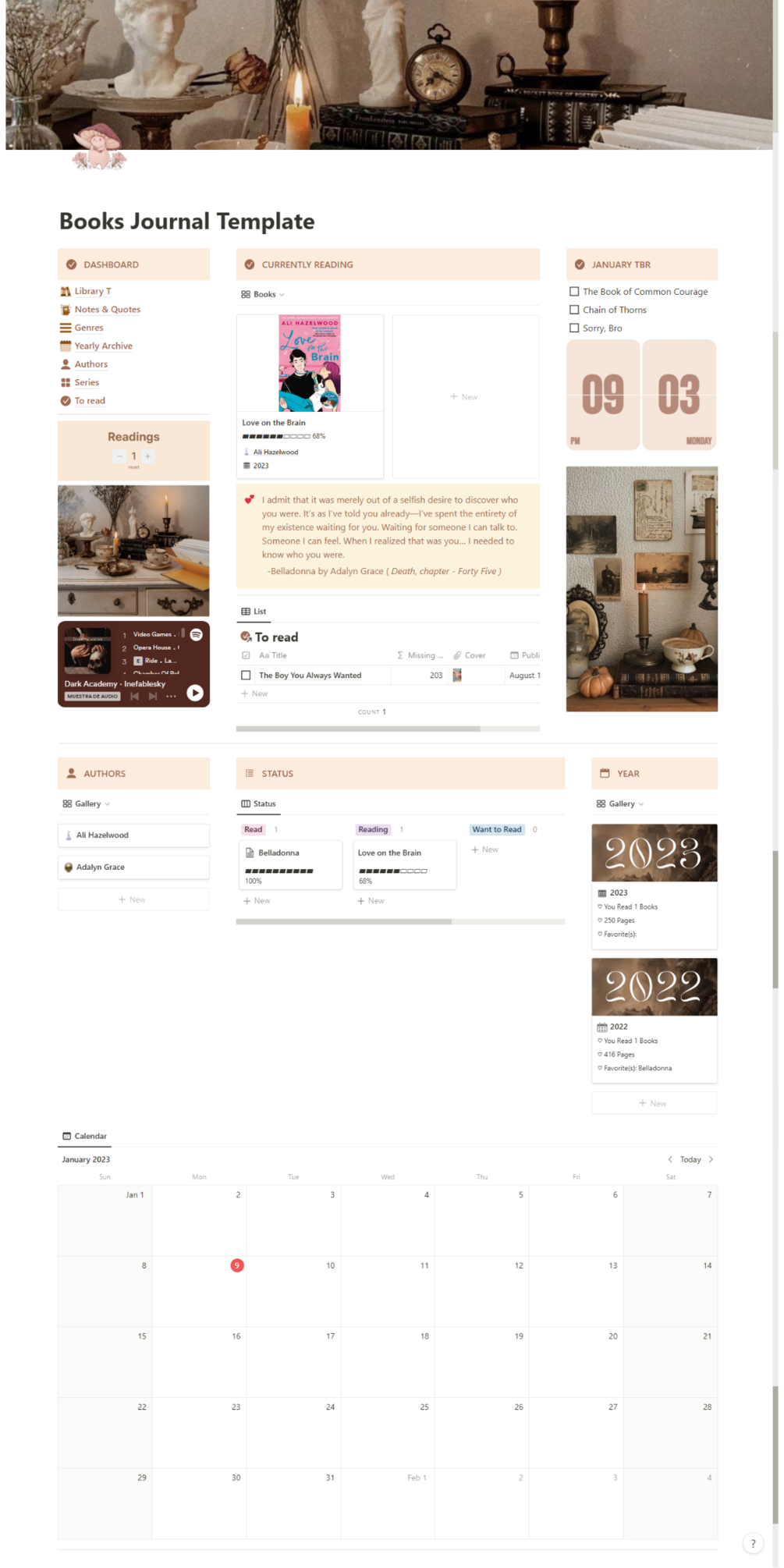 You will get a smart reading list template, being a more detailed and personal goodreads alternative.